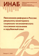 ИНАБ Выпуск №2 / 2007 Информационно-аналитический бюллетень Института социологии РАН. Выпуск 2 / 2007 ПЕНСИОННАЯ РЕФОРМА В РОССИИ: РЕЗУЛЬТАТЫ МОНИТОРИНГА СОЦИАЛЬНО–ЭКОНОМИЧЕСКОГО ПОЛОЖЕНИЯ НАСЕЛЕНИЯ И ЗАРУБЕЖНЫЙ ОПЫТ. — М.: Институт социологии РАН, 2007.— 80 с. Авторский коллектив: П.М. Козырева, М.С. Косолапов, (руководители коллектива), Е.И. Артамонова, З.Е. Дорофеева, В.В. Люблинский,А.В. Мозговая, А.Э. А.Э. Низамова, А.И. Смирнов, А.К. Соловьев. А.Д. Толмач, Е.В. Шлыкова Информационно-аналитический бюллетень. Выпуск 2 / 2007(открывается в новом окне) Отдельные разделы бюллетеня ISBN 978–5–89697–128–3